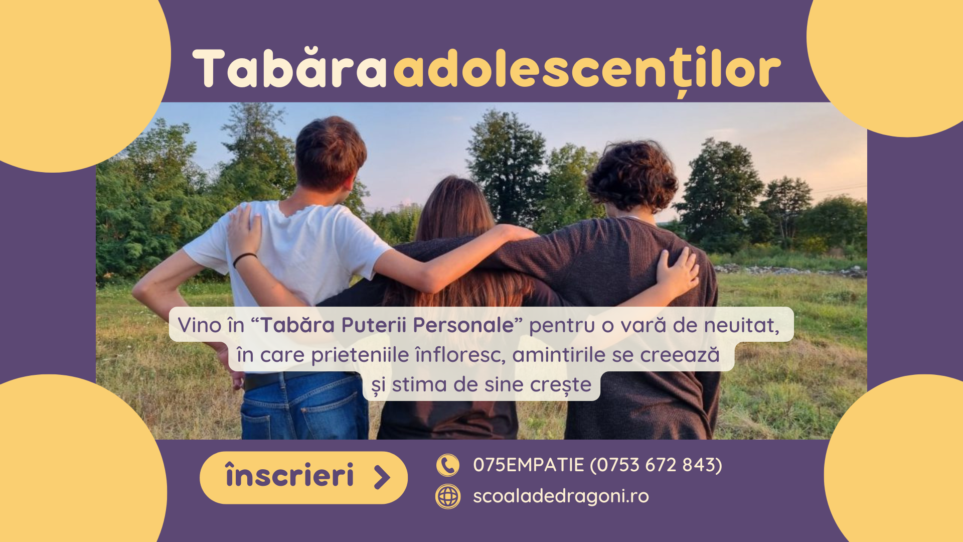 Tabăra de dezvoltare personală care îl poartă pe adolescentul tău într-un treasure hunt de 5 zile în inima pădurii, învățând și practicând prin joc elementele de bază ale Comunicării Nonviolente (observații, emotii, nevoi, cerinte, recunostinta), contribuind la creșterea stimei de sine.